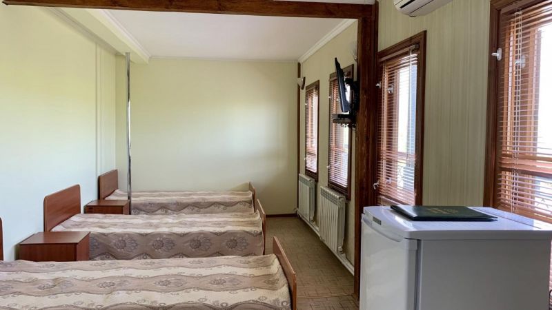 Площадь однокомнатных номеров категории «Стандарт» для трёхместного размещения – 20 м². Номера оснащены всем необходимым для комфортного отдыха: полутораспальные кровати, прикроватные тумбочки, комод и шкаф для одежды, обеденный стол и стулья, телевизор и холодильник, сплит-система.