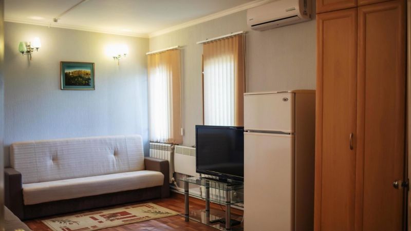 Однокомнатные номера категории «Стандарт» предлагают следующие условия для проживания: односпальные кровати, прикроватная тумбочка, телевизор, холодильник, шкаф для одежды, кондиционер.